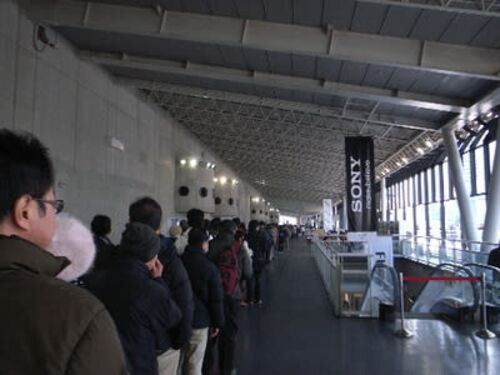 今年もCP+へ。去年は最終日、行列に並ばなくても入場できたが・・・ 今年はこんな状態。土曜と祝日が重なったというのが大きいかな。 11時に入場。会場はそこそこの入り。 各社のブースは新製品目当てのお客さんで黒山の人だかり。すでに30分待ちのところも…